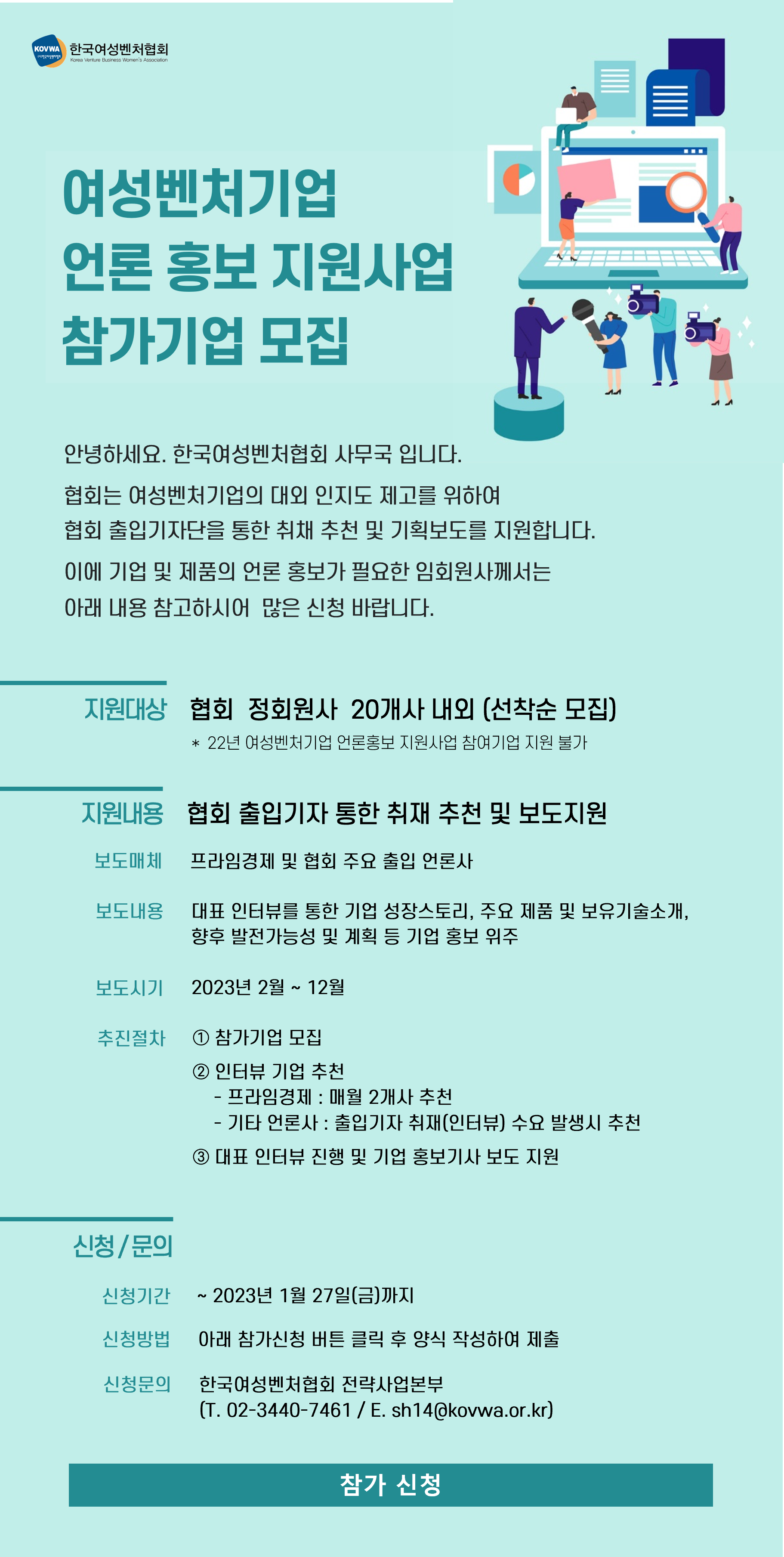 [모집] 2023 여성벤처기업 언론홍보 지원사업 참가기업 모집