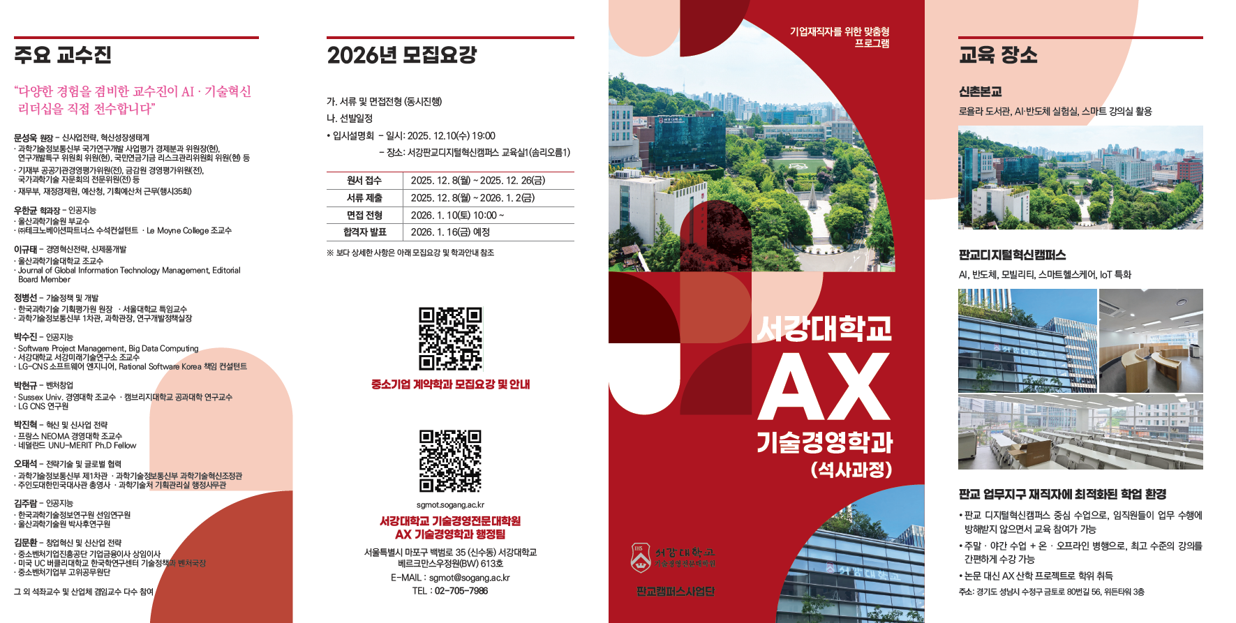 [외부] (서강대학교) 기술경영전문대학원 AX기술경영학과(석사) 신입생 모집